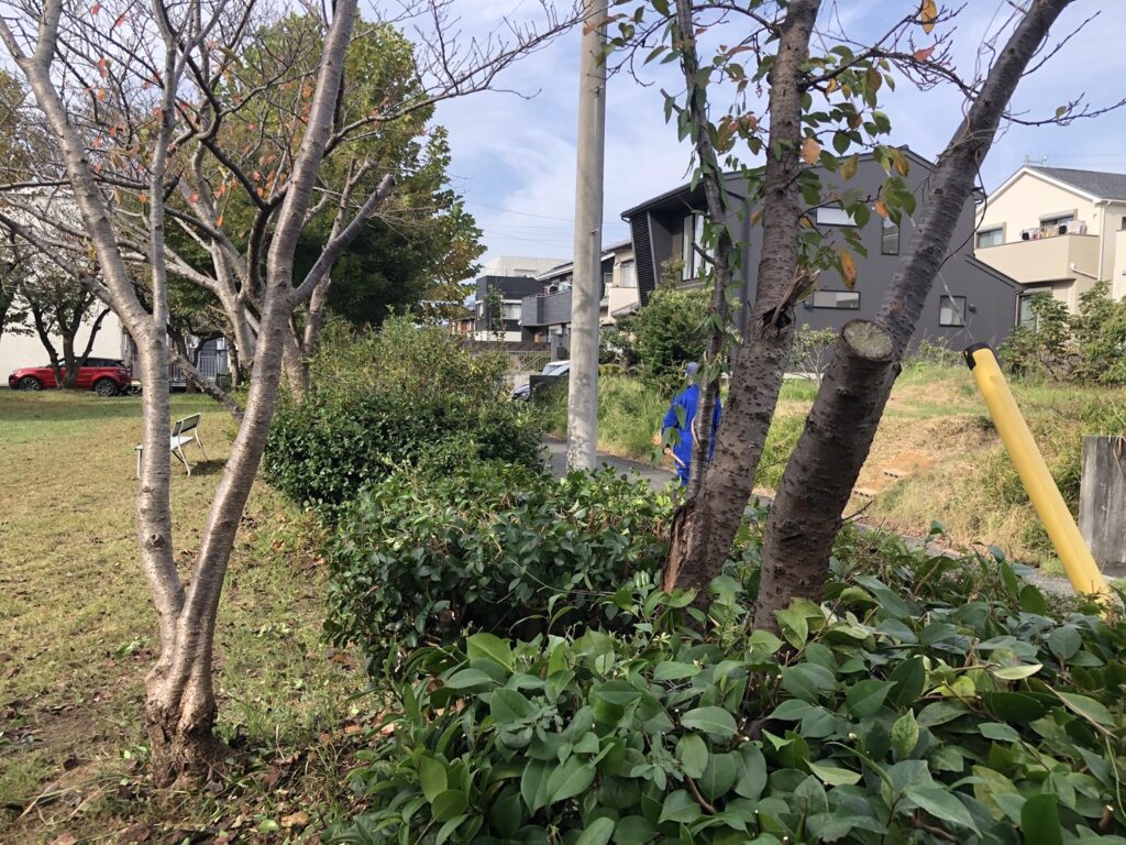 公園はすっきりきれいになり、道路にはみ出していた草木も剪定したことにより交差点の安全性も高まりました。